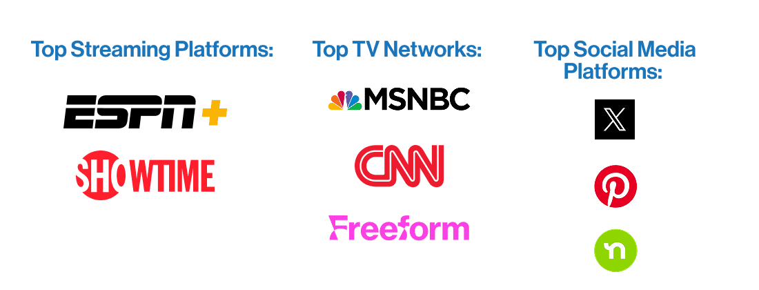 The Wellness-Seeking Consumers are most heavily engaged on streaming platforms, Internet video sites, and with traditional television. While they use social media frequently—55% are online 20 or more hours each week—65% are only lightly engaged with these platforms.