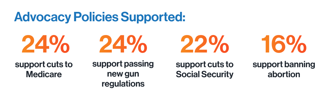 Using the Resonate AI-powered data engine, rAI, we looked at the advocacy policies supported or opposed by probable voters in the 2024 election who took one of these actions when it comes to prescription drug prices.