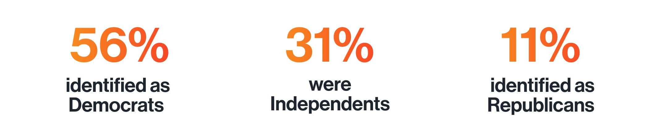 - 31% are Independents, a critical group whose swing ultimately influenced the election outcome.