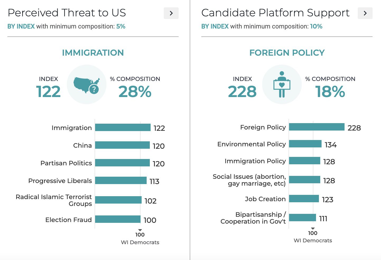 That’s why at Resonate, we scaled our 2022 Primary Election Voter Landscape to Wisconsin, allowing our AI to identify niche, decisive Democratic and Republican primary niche voter segments based on the insights that are actually informing their candidate choices TODAY in the current political environment.