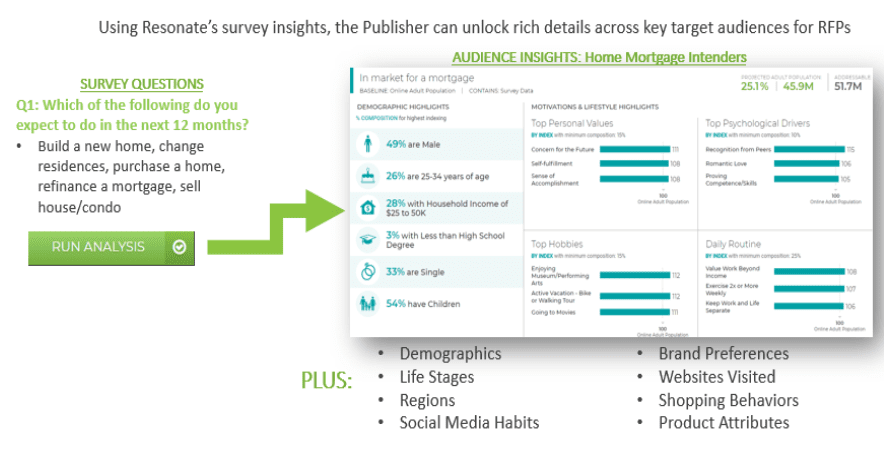 With the Resonate Platform, publishers have access to a vast array of attributes and insights around their consumer segments, including their values, motivations, purchase behaviors, media consumption and much more. Those insights guide content, targeting, messaging and advertising to specific audiences. Most importantly, publishers can show advertisers how many of those customers they reach and how best to connect with them.