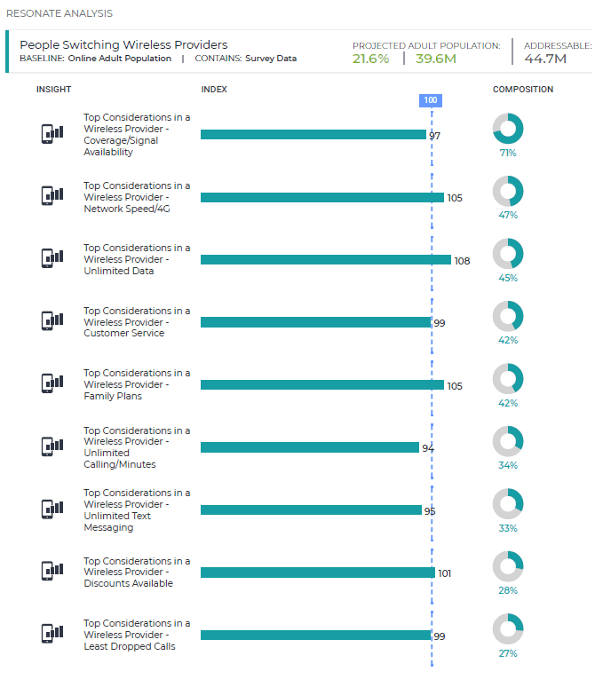 Resonate also has valuable insights on each wireless provider and the who, what, when, where and why of all of their switchers.