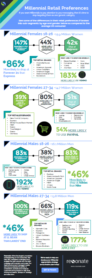 We all know that Millennials love to shop and they are estimated to spend $200 billion this year, alone. But you’d be surprised by some of their Retail habits when you begin to break this group down into sub-segments by gender and age group.