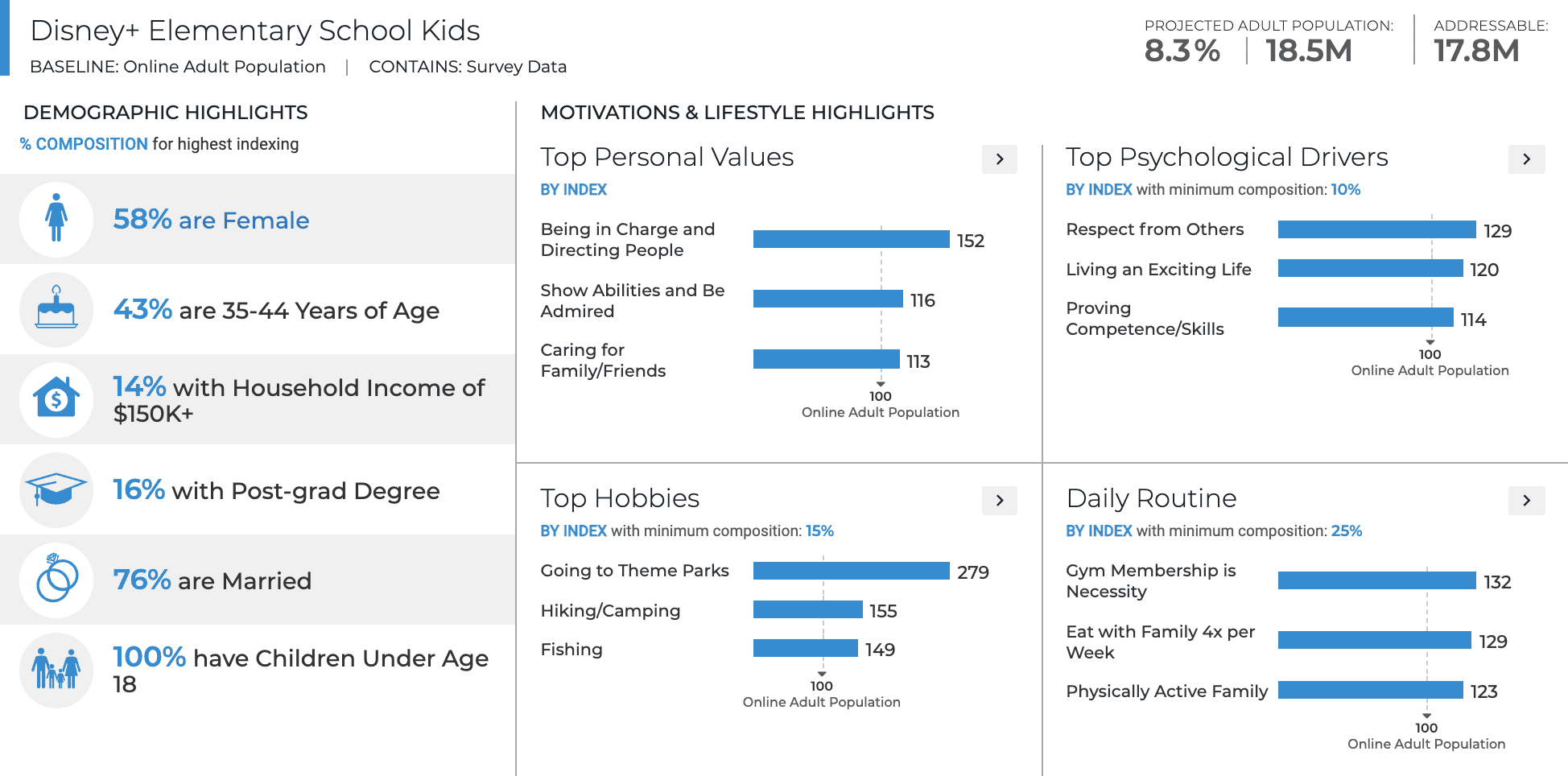 When you think Disney+, parents of elementary school kids are probably one of the first demographics that come to mind. But, what do you know about them beyond their love of Frozen? We took a look at Disney+ viewers with elementary school age kids, children ages 5-9 for our purposes today, and discovered 4 fast facts that can help Disney+ keep this audience coming back.